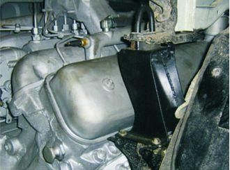 ПРИМЕЧАНИЕ: Задние кронштейны двигателя устанавливаются на раме на штатные места, отверстия под подушки, балки высверливаются по месту. В отдельных случаях все крепления сдвигаются впе